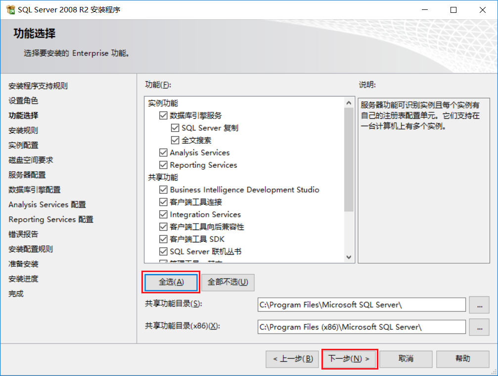 選擇 SQL Server功能安裝 ,點擊 下一步